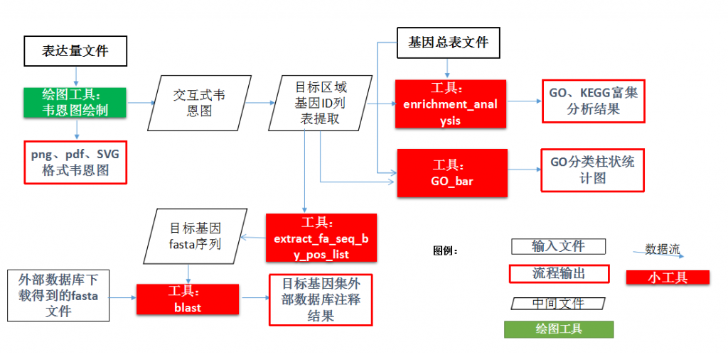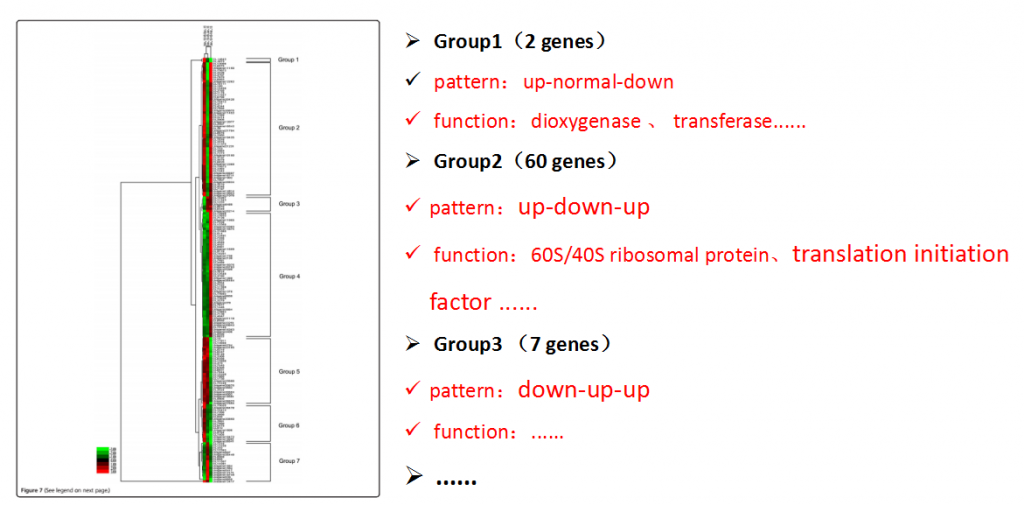 圖片與列表交互功能可實現對聚類熱圖中各個聚類模塊內基因ID及其表達量信息的提取,利用該交互功能得到的信息,結合云平臺上表達模式分析工具、基因功能分析工具及文件操作工具,可深入挖掘聚類熱圖上不同聚類模塊內基因集合的表達模式與功能信息。