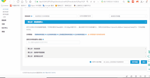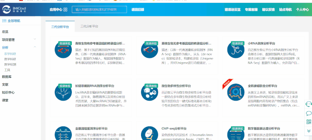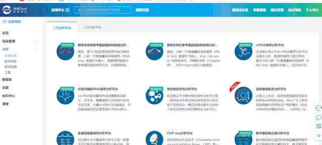 百邁客云包含農(nóng)學(xué)和醫(yī)學(xué)兩大類分析平臺,醫(yī)學(xué)分析平臺主要針對人、鼠數(shù)據(jù)的分析,包含:轉(zhuǎn)錄組、非編碼RNA、單基因病外顯子、腫瘤外顯子、重測序等數(shù)據(jù)分析,以及全轉(zhuǎn)錄組聯(lián)合分析;農(nóng)學(xué)分析平臺可以應(yīng)用到更多的物種,涵蓋轉(zhuǎn)錄組、非編碼RNA、微生物、蛋白、代謝等數(shù)據(jù)的分析,以及全轉(zhuǎn)錄組聯(lián)合分析等。點(diǎn)擊左側(cè)導(dǎo)航分析->農(nóng)學(xué)或者醫(yī)學(xué)打開分析平臺列表頁面,點(diǎn)擊選擇您想要使用的分析平臺,打開其詳細(xì)介紹頁面,該頁面可以看到該平臺的應(yīng)用領(lǐng)域“平臺介紹“技術(shù)背景“案例“課堂“版本記錄,點(diǎn)擊打開軟件即可進(jìn)入到參數(shù)頁面。