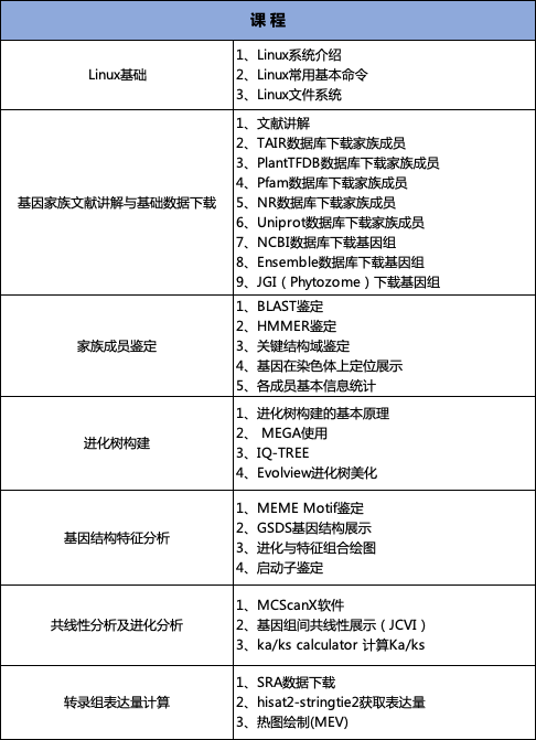 2、基因組類課程:比較基因組學(xué)+基因家族分析課程(可組合:零基礎(chǔ)R語言繪圖+生信入門+GWAS+遺傳進(jìn)化+重測序分析課程)