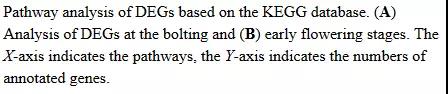 取樣方法:兩個(gè)品系的均取抽薹時(shí)期與花發(fā)育早期兩個(gè)時(shí)間點(diǎn)的分枝發(fā)生部位。每個(gè)品系每個(gè)時(shí)期1個(gè)樣本(每個(gè)個(gè)體至少取5個(gè)分枝發(fā)生部位,最多6個(gè)個(gè)體混樣樣本),總共4個(gè)樣本,每個(gè)樣本分別進(jìn)行mRNA測(cè)序與microRNA測(cè)序