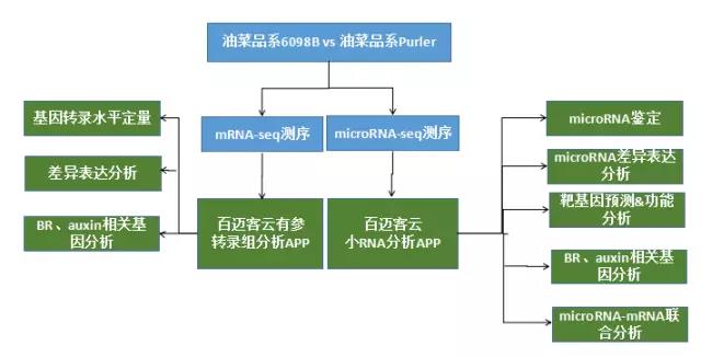 該研究通過(guò)對(duì)分枝角度有顯著差異的兩種油菜品系進(jìn)行mRNA與microRNA高通量測(cè)序,來(lái)進(jìn)一步探討油菜中與分蘗角度相關(guān)的分子調(diào)控機(jī)制。