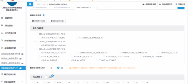 DEseq2軟件適用于有生物學(xué)重復(fù)的項目,edgeR適用于無生物學(xué)重復(fù)的項目,選擇第一個,系統(tǒng)會自動識別項目類型選擇對應(yīng)的軟件