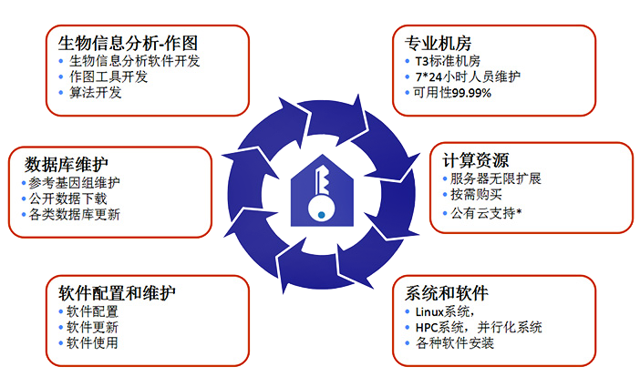 依托百邁客云(BMKCloud)這個集生物信息分析軟件、數(shù)據(jù)庫以及云計算為一體的生物大數(shù)據(jù)信息分析平臺,在一年的使用時間權(quán)限內(nèi),提供多種包含標(biāo)準(zhǔn)化流程分析和個性化流程分析的集成式APP和100多款生物信息軟件及制圖工具,及12PB的海量公共數(shù)據(jù),可幫助國內(nèi)基因組學(xué)研究者快速完成高通量測序數(shù)據(jù)從下機到后期的數(shù)據(jù)深度挖掘,相關(guān)公共數(shù)據(jù)的檢索&整合分析(公共測序數(shù)據(jù)、文獻、功能基因信息等),分析技術(shù)和研究思路的學(xué)習(xí)交流,讓用戶能夠隨時隨地自主進行基因大數(shù)據(jù)挖掘,從而多角度更高效的實現(xiàn)科研成果的產(chǎn)出。一個百邁客云賬戶(年服務(wù)套餐)相當(dāng)于一個專業(yè)的生物信息分析團隊。